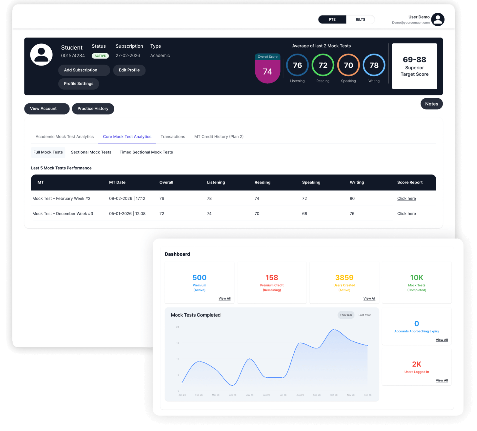 PTE + IELTS + LanguageCertSingle platform for multiple exam preparations